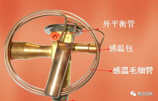 4、经过热力膨胀阀的节流降压变成低压低温的制冷剂液体后流入蒸发器(冷风机或盘管);