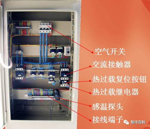 空气开关:总制冷设备开关,控制系统的开停且系统电流过大时瞬间内跳闸保护。